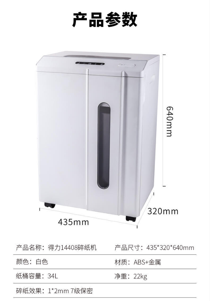 商品名稱:得力(deli)七級高保密碎紙機(jī)大容量 30分鐘連續(xù)碎紙機(jī) 得力(deli)碎紙機(jī)14408