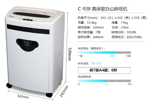 商品名稱:科密(comet)碎紙機(jī) 高保密辦公高速碎紙機(jī) 5級(jí)保密文件粉碎機(jī) 科密碎紙機(jī)C-938