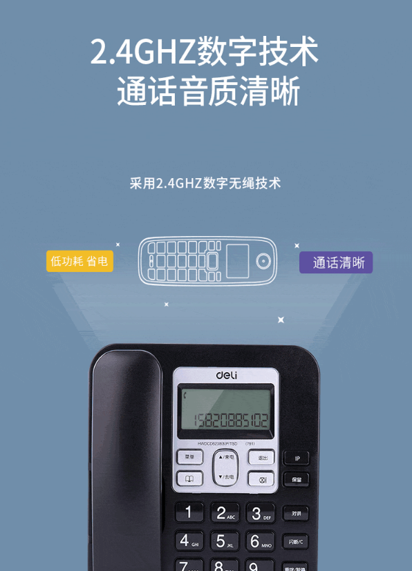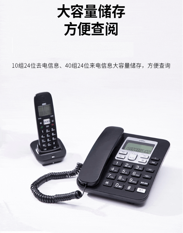 商品名稱:得力(deli)數(shù)字無繩電話機(jī) 數(shù)字無繩電話機(jī)子母電話機(jī)高通話座機(jī)商務(wù)辦公 得力子母電話機(jī)791