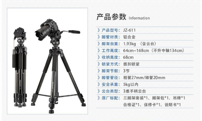 商品名稱:沃爾夫?qū)╓OLFGANG) 三腳架套裝 適用單反相機(jī)微單相機(jī)等沃爾夫?qū)鵍Z-611