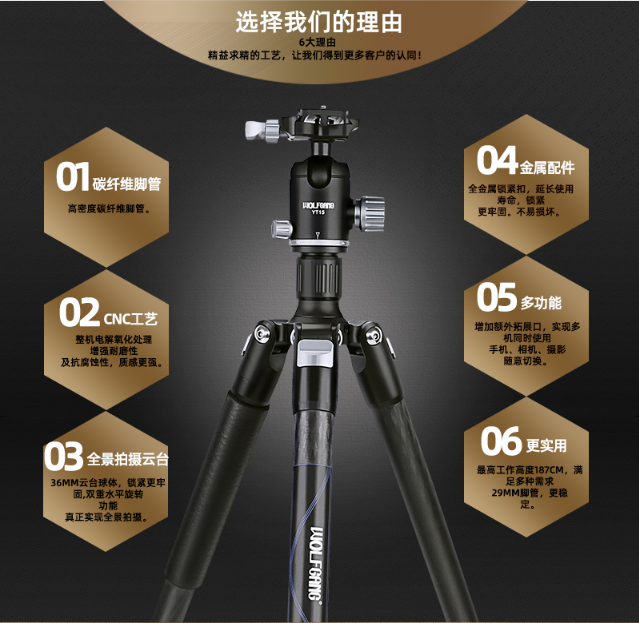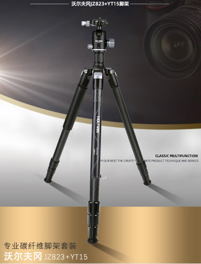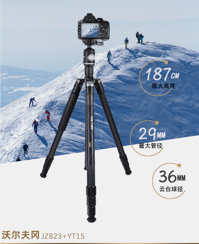 商品名稱:沃爾夫?qū)╓OLFGANG) JZ823+YT15專業(yè)攝影攝像機(jī)相機(jī)三腳架液壓阻尼云臺(tái)單反微單攝像機(jī)球形云臺(tái)三腳架 炭纖維三腳架 沃爾夫?qū)鵍Z-823