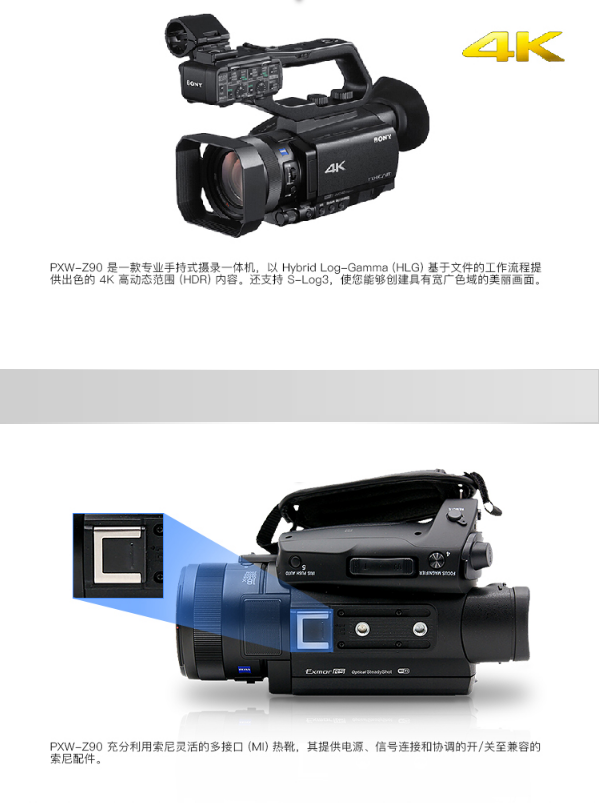 商品名稱:索尼(SONY)PXW-Z90高清4K攝像機(jī)手持便攜式 索尼Z90攝像機(jī)