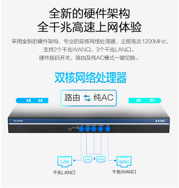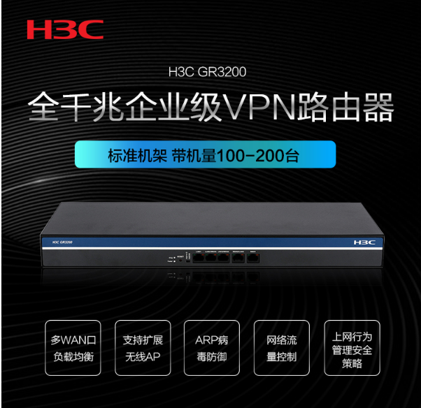 商品名稱:華三(H3C)多WAN口全千兆企業(yè)級VPN路由器 內(nèi)置AC防火墻 帶機(jī)量100-200 企業(yè)級路由器華三路由器GR3200