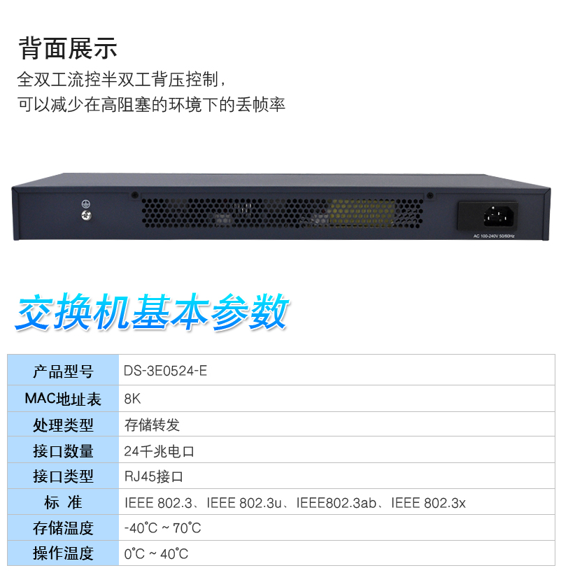 商品名稱:??低暻д妆O(jiān)控交換機(jī) 非網(wǎng)管網(wǎng)絡(luò)分線器 24口千兆 DS-3E0524-E