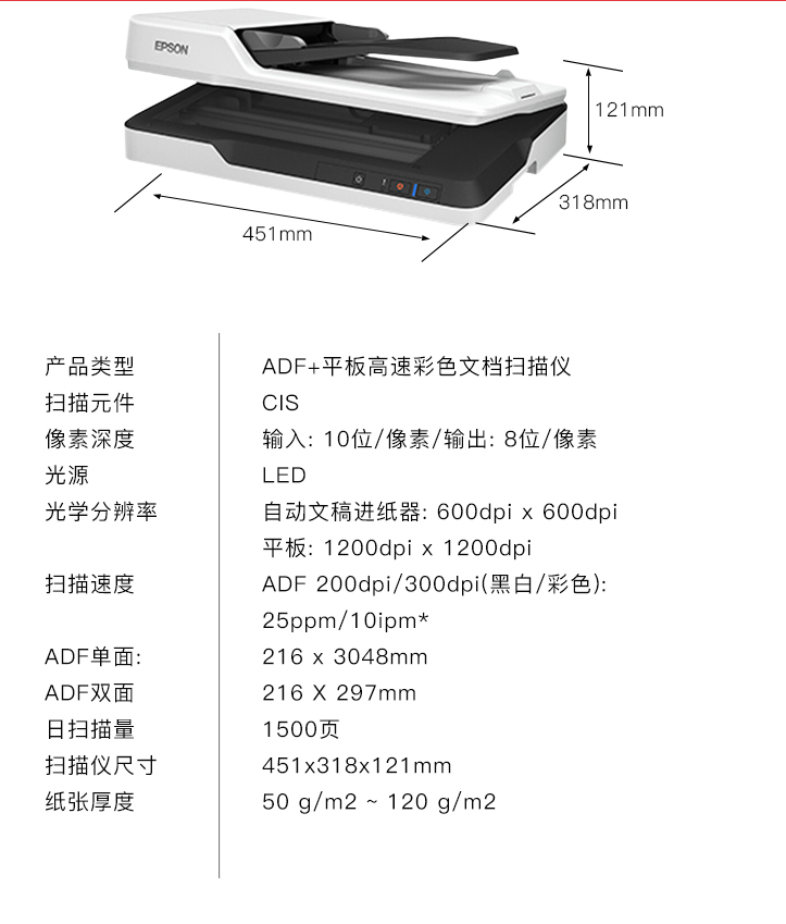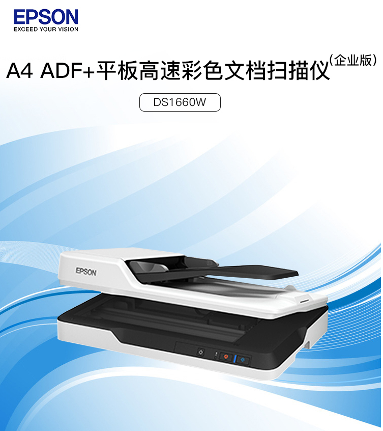 商品名稱:愛普生(EPSON) DS-1660W A4 ADF+平板Wifi無線掃描自動(dòng)進(jìn)紙25ppm高速彩色文檔掃描儀
