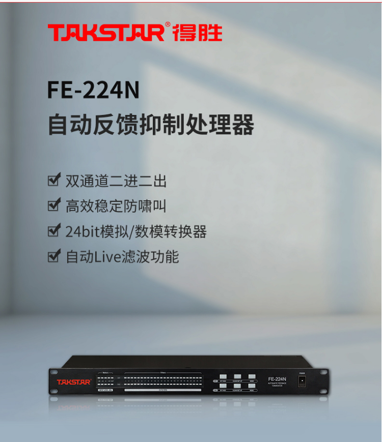 商品名稱:得勝(TAKSTAR)FE-224N 自動(dòng)反饋抑制處理器專業(yè)音頻 會(huì)議演出演講自動(dòng)Live濾波
