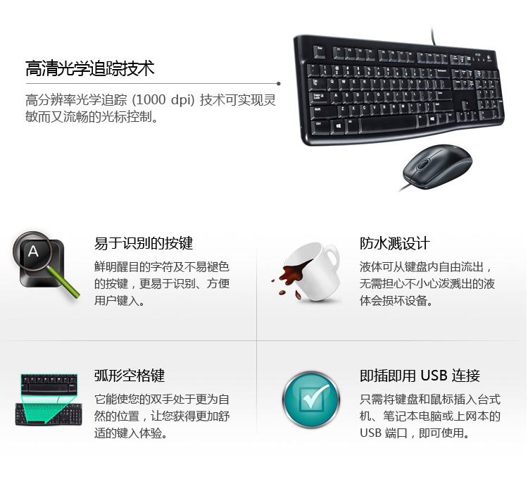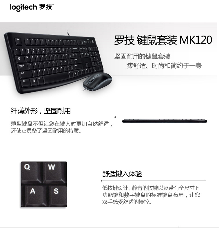 商品名稱:羅技(Logitech)MK120 鍵盤 鍵鼠套裝 有線鍵鼠套裝 辦公鍵鼠套裝 電腦鍵盤 筆記本鍵盤