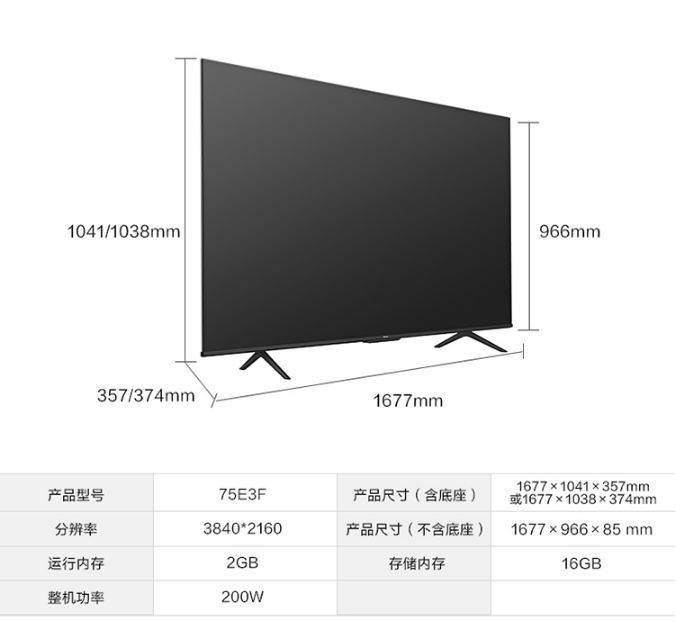 商品名稱:海信(Hisense)普通電視設(shè)備(電視機(jī))75E3F 75英寸 4K HDR 超薄全面懸浮屏智能電視 AI聲控 MEMC防抖 平板電視機(jī)